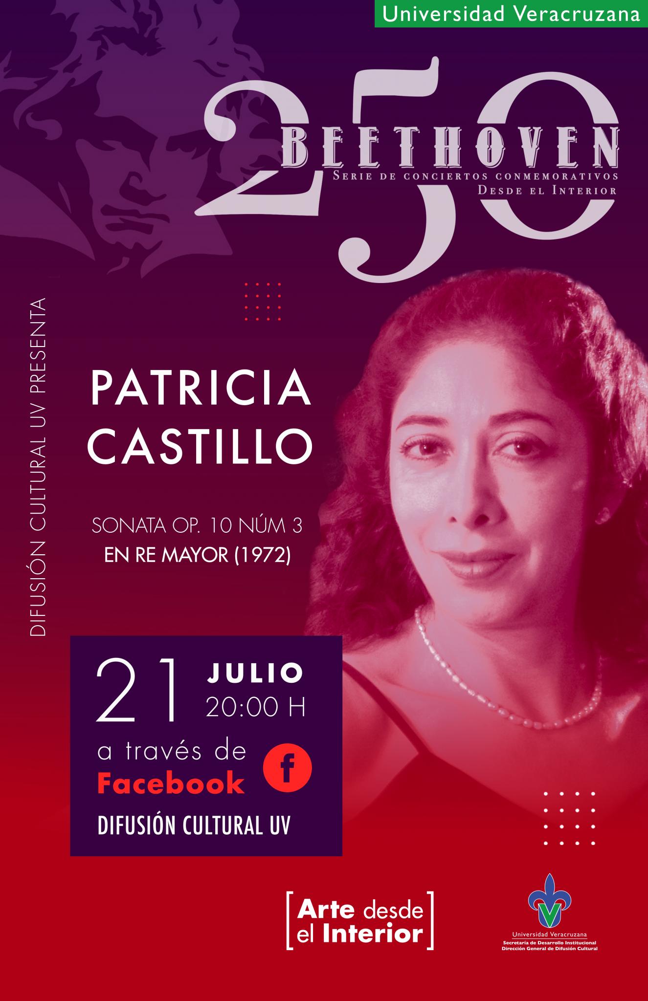 El séptimo programa de solistas se divide en dos intervenciones, la primera el lunes 20 con un recital de piano a cargo de los alumnos de la maestra Patricia Castillo de la Facultad de Música de nuestra Máxima Casa de Estudios con un programa titulado “Festival Beethoven 2020”, la segunda participación será el martes 21 con la participación de la maestra Patricia Castillo con un recital de piano titulado “Beethoven”.