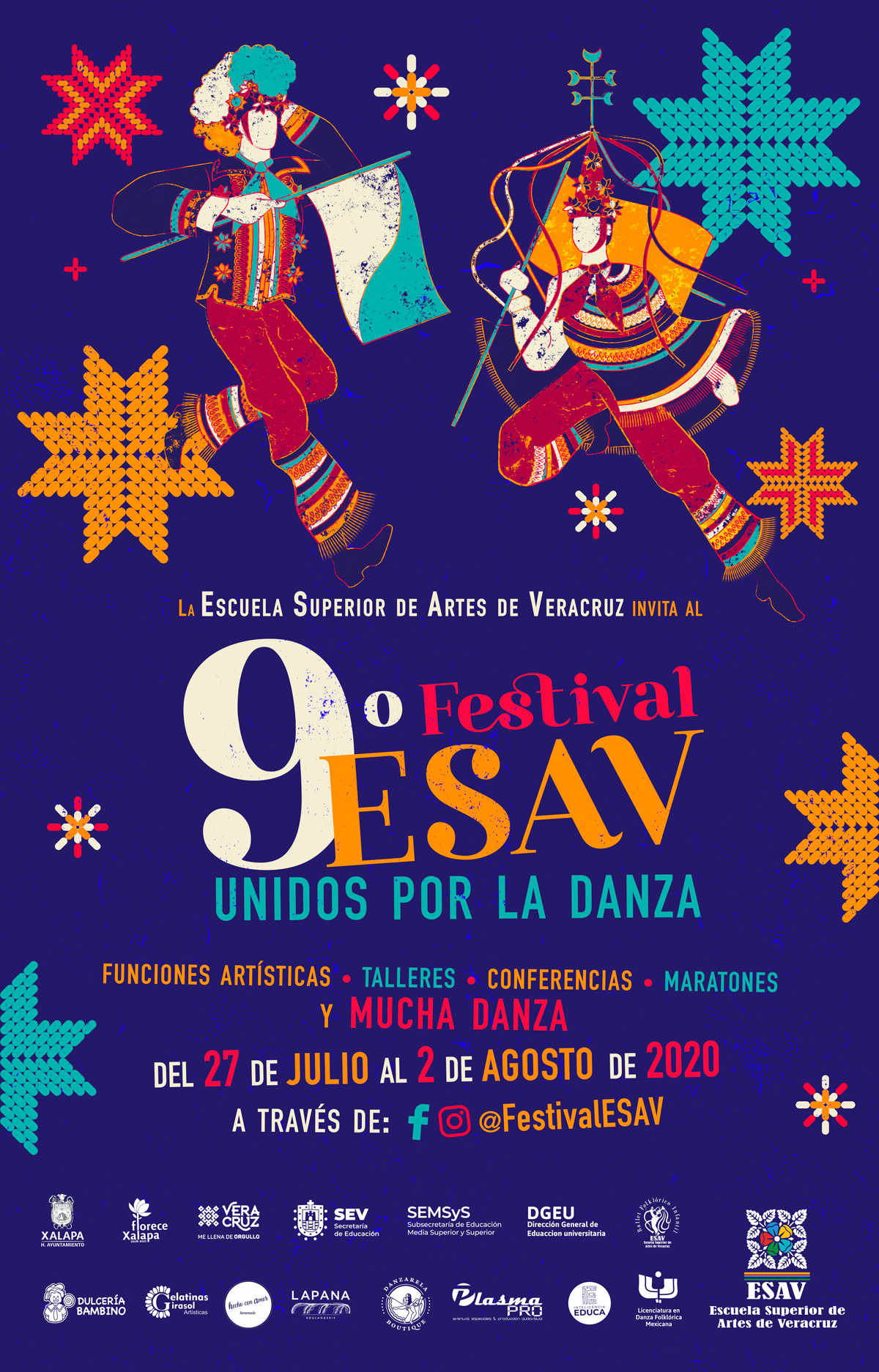 La Escuela Superior de Artes de Veracruz (ESAV) a través de la Licenciatura en Danza Folklórica Mexicana se unen para conmemorar a la Danza, con la novena edición del Festival ESAV, Unidos por la danza que en esta edición y por la situación actual a nivel mundial a causa del COVID-19 se realizará a través de streaming en nuestras redes sociales @9º Festival ESAV.