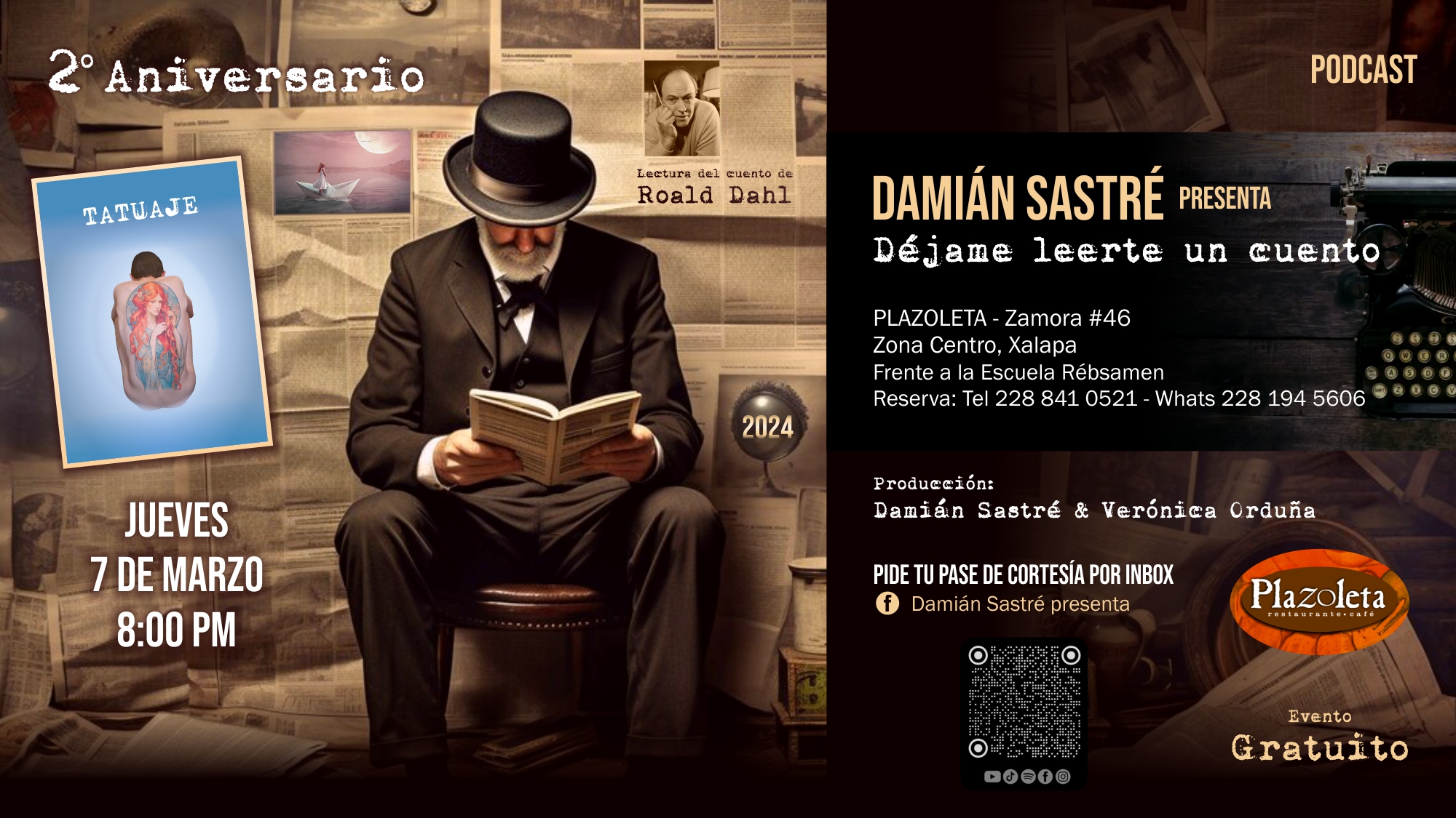 Celebración del Segundo aniversario del podcast “Déjame leerte un cuento” de Damián Sastré.