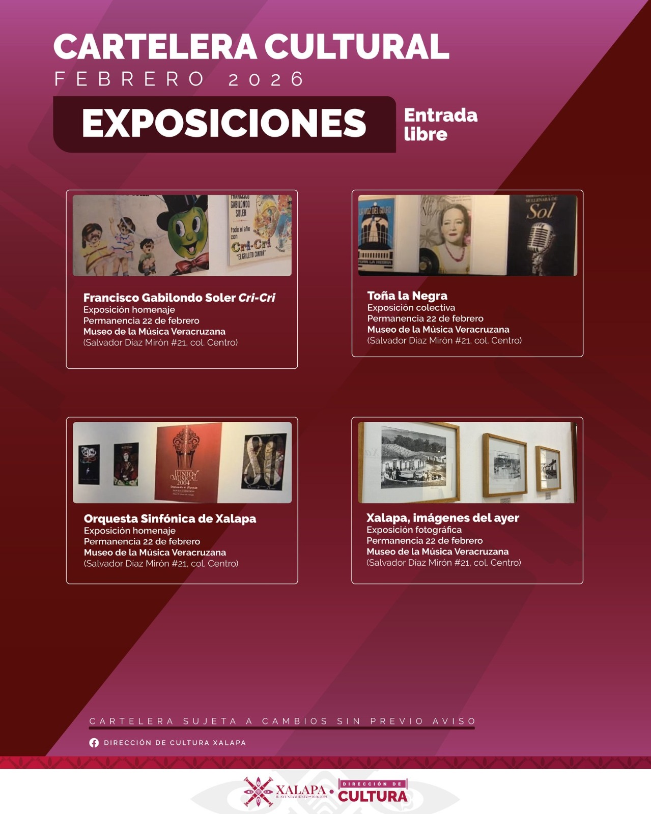 Eventos culturales en Xalapa durante febrero