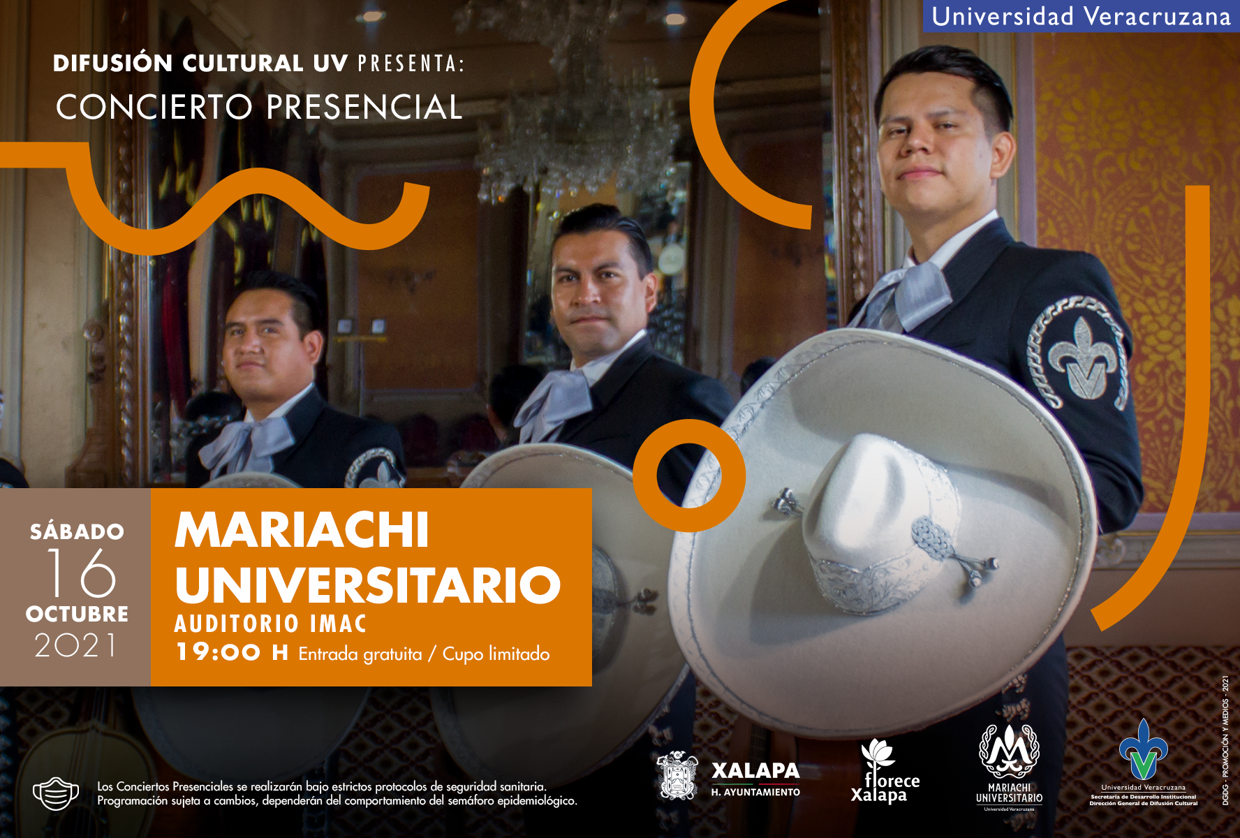 La entrada a los conciertos es gratuita siguiendo estrictos protocolos de seguridad sanitaria y capacidad reducida para garantizar la seguridad del público, los ejecutantes y el personal en los diferentes recintos seguros de la Universidad Veracruzana.