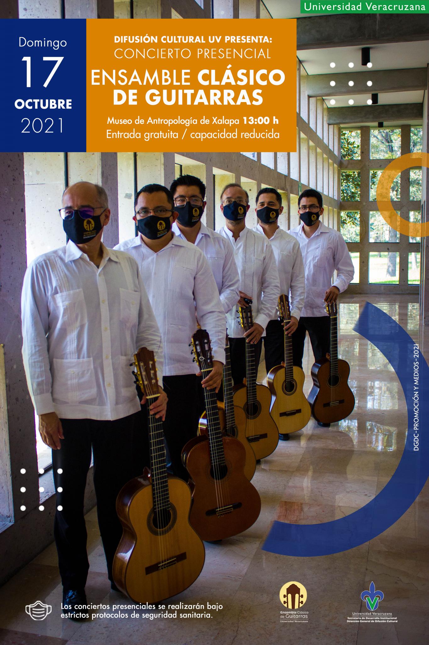 Para disfrutar del concierto del Ensamble Clásico de Guitarras, la cita es el domingo 17 de octubre a las 13:00 horas en el auditorio del Museo de Antropología de Xalapa, este ensamble lo integran los maestros, Alfredo Sánchez, Jesús Omar Gutiérrez, Luis Enrique González, Leonardo Rivera y Víctor Luis Luna con la dirección del Mtro. Roberto Aguirre. El programa a presentar incluye obras de Rodrigo Lomán, Xavier Camino y Adeï Berra Núñez.