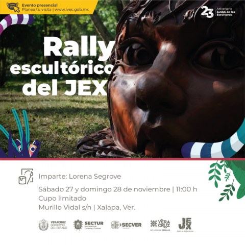 En el marco del programa de actividades en conmemoración del 23 aniversario del Jardín de las Esculturas, el Instituto Veracruzano de la Cultura invita a participar en el Rally escultórico del JEX, dinámica que se realizará de manera presencial los días 27 y 28 de noviembre, de las 11:00 a las 14: 00 horas, en las instalaciones del recinto más verde del IVEC.