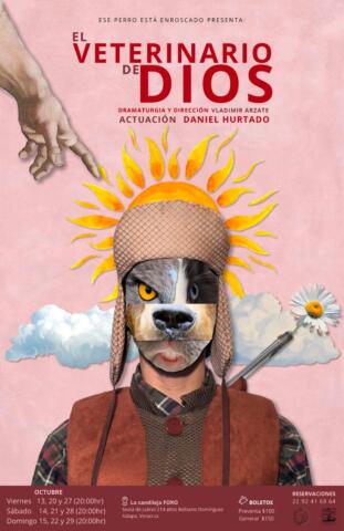 Sinopsis: En el cielo, dos nubes. Una tiene forma de gatito. También hay dos arbustos y el sol. Así comienza el primer día de vacaciones de Tim, el veterinario. ¿Qué hace un veterinario en el bosque durante su tiempo libre? Exacto, cazar. Tim ha venido a enfrentar los fantasmas que hicieron de él una caricatura del ser humano. Acompañado de un conejo, un halcón y un oso buscará descubrir cómo se convirtió en el veterinario de Dios. Ubicación: Foro La Candileja. Sexta de Juárez 214 altos Belisario Domínguez. Xalapa, Veracruz. Horarios: Viernes 13, 20 y 27 (20:00hr); Sábados 14, 21 y 28 (20:00hr) y Domingo 15, 22 y 29 (20:00hr). Costos del boleto: Entrada general $150. Descuentos y preventa $100. Reservaciones Whatsapp: