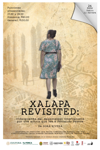 Obra de teatro titulada: «Xalapa Revisited: videopoemas del desasosiego intervenidos por una actriz que lee a Fernando Pessoa.», este viernes 26 de noviembre del 2021 en horario de 05:30 pm o 07:30 pm en el teatro J.J. Herrera.