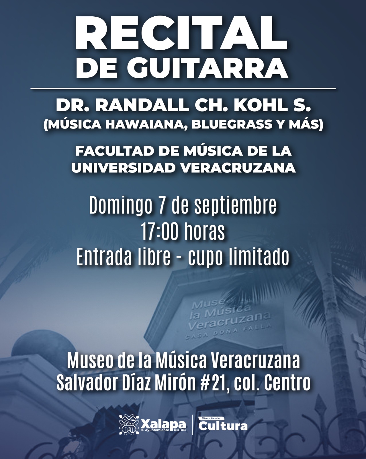 Museo de la Música Veracruzana Casa Doña Falla calle Salvador Díaz Mirón número 21, Xalapa, Veracruz, MéxicoRecital de Guitarra